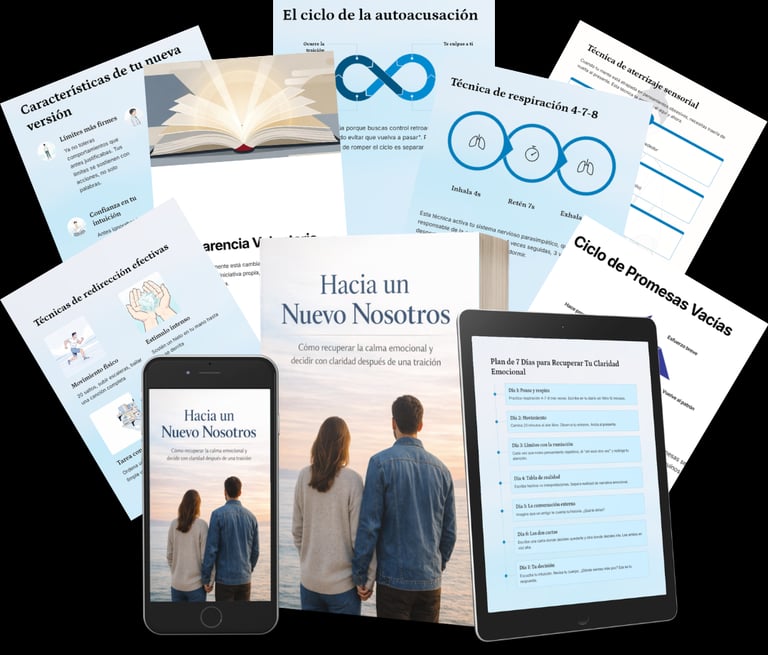 Un proceso guiado para reconstruir tu seguridad interna. Incluye ejercicios prácticos para dejar de compararte, recuperar dignidad emocional y volver a confiar en ti.